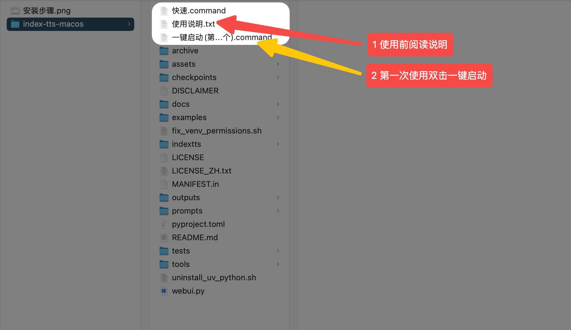 1. 第一次使用请双击【一键启动(第一次打开点这个).command】