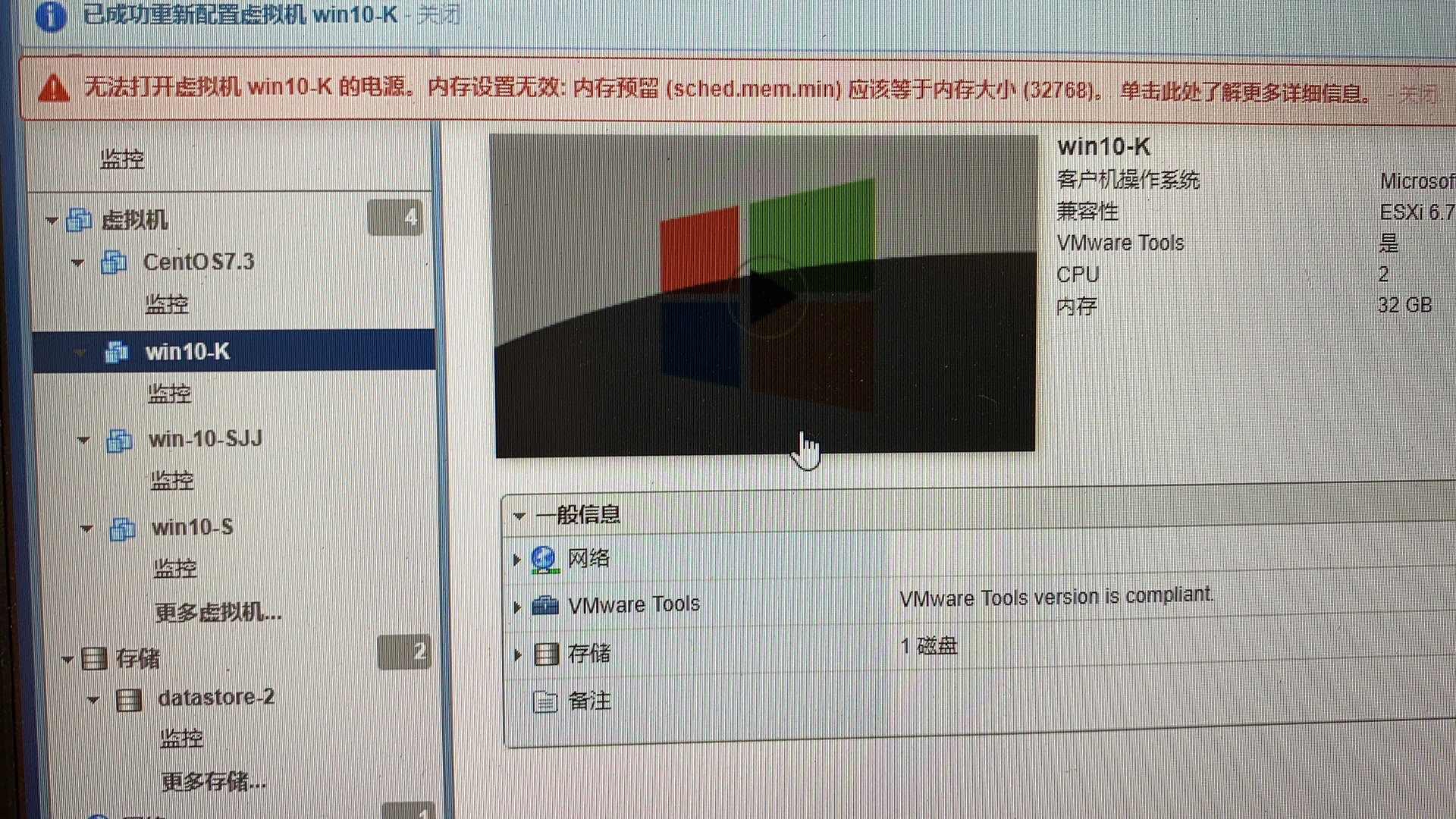 2、按常规方式新建虚拟机,添加PCI设备,选中对应GPU卡。注意,内存注意一定要勾选预留,否则开机后报错如下:无法打开虚拟机 win10 的电源。内存设置无效: 内存预留 (sched.mem.min) 应该等于内存大小 (32768)。 单击此处了解更多详细信息。