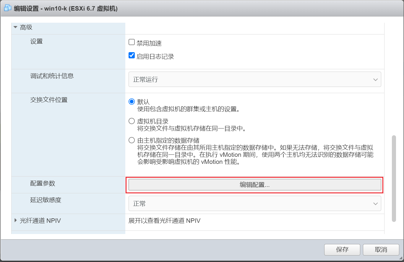 2)编辑虚拟机 - 虚拟机选项 - 高级 - 配置参数 - 编辑配置:添加以下2条;