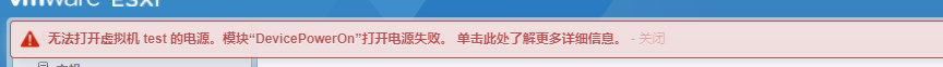 3、再次开机,继续报错:打开虚拟机的电源。模块“DevicePowerOn”打开电源失败。 单击此处了解更多详细信息。