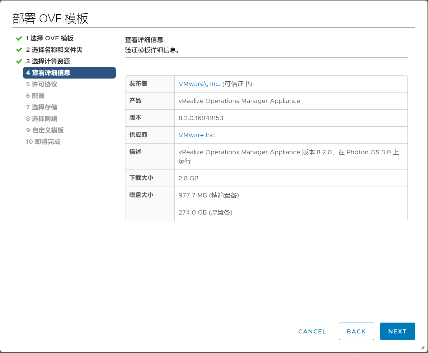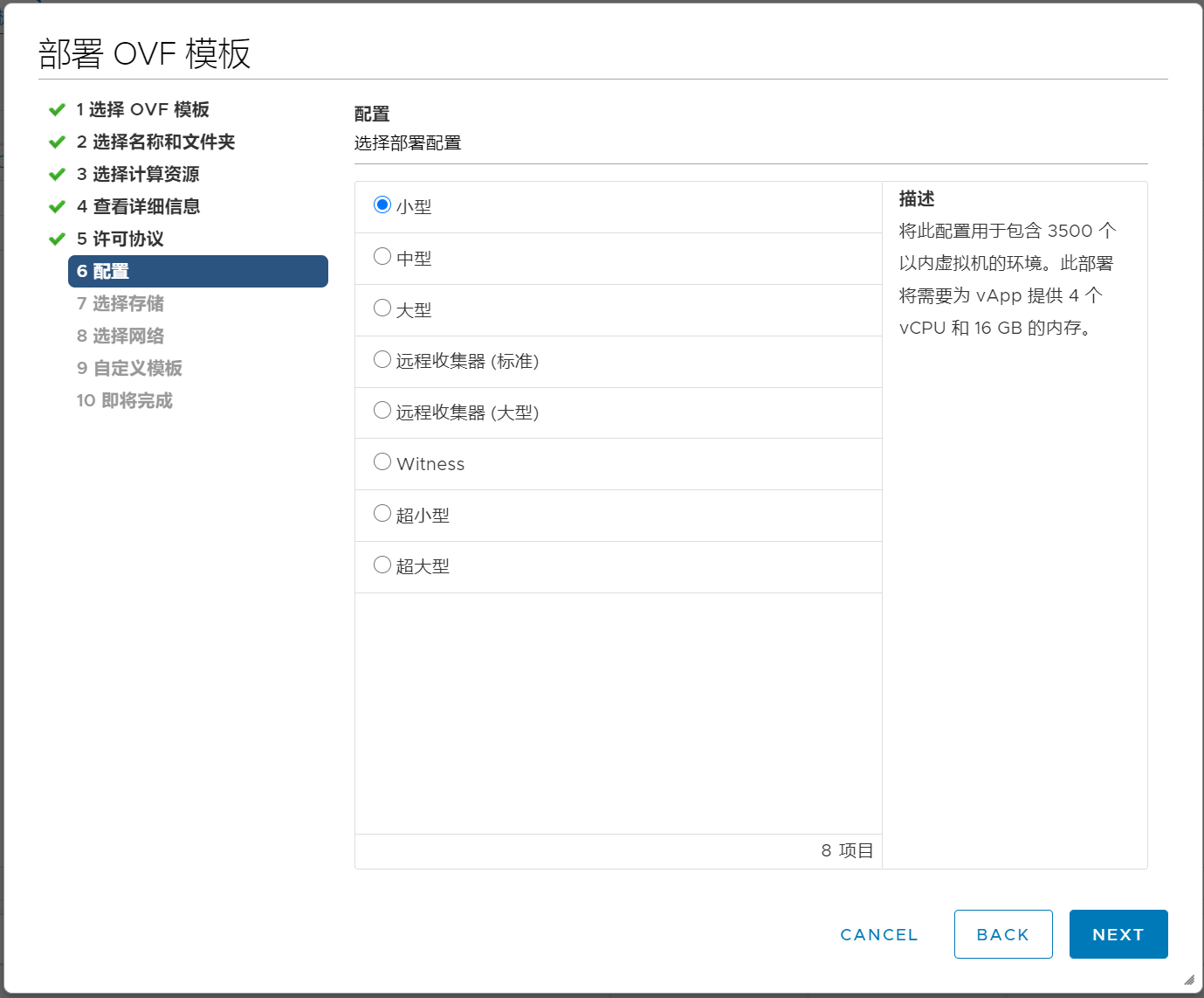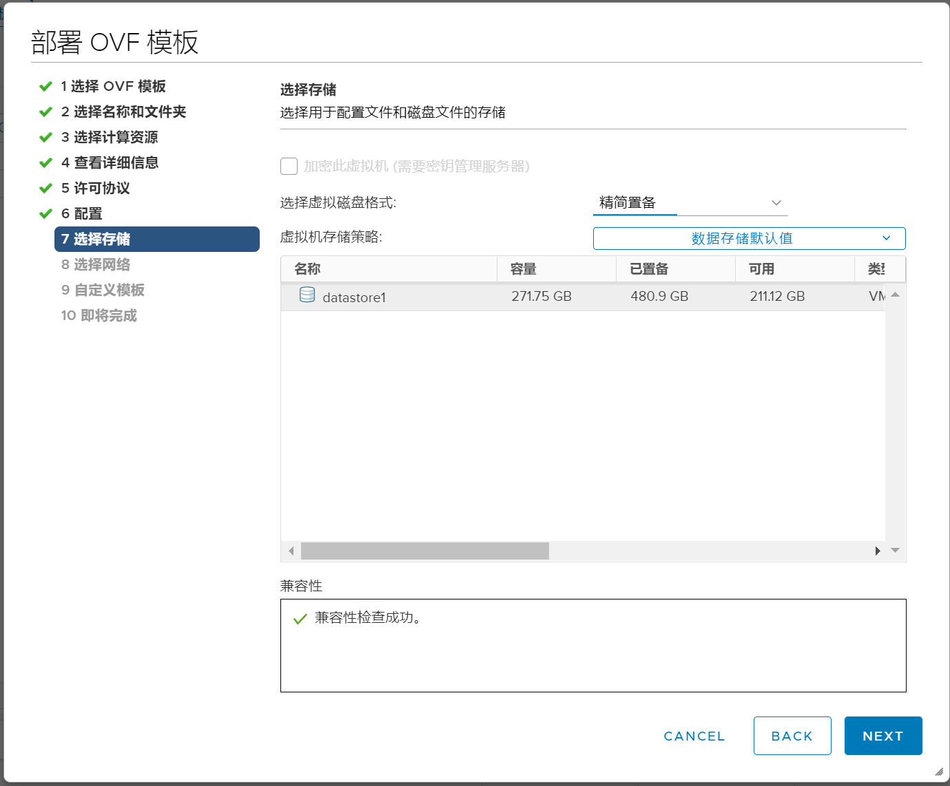 5、选择部署的存储位置,磁盘格式建议选择精简置备