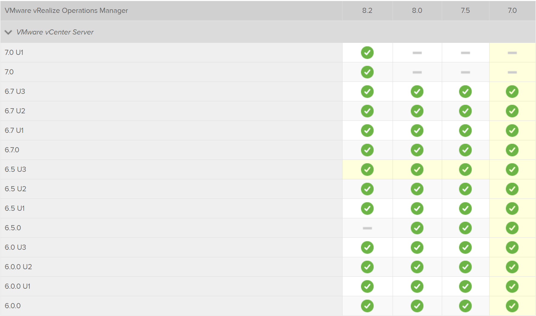 1、上一篇写了vRealize Operations Manager 7.x 安装和配置教程,本文档写vRealize Operations Manager 8.x 安装和配置。继续查兼容列表先。