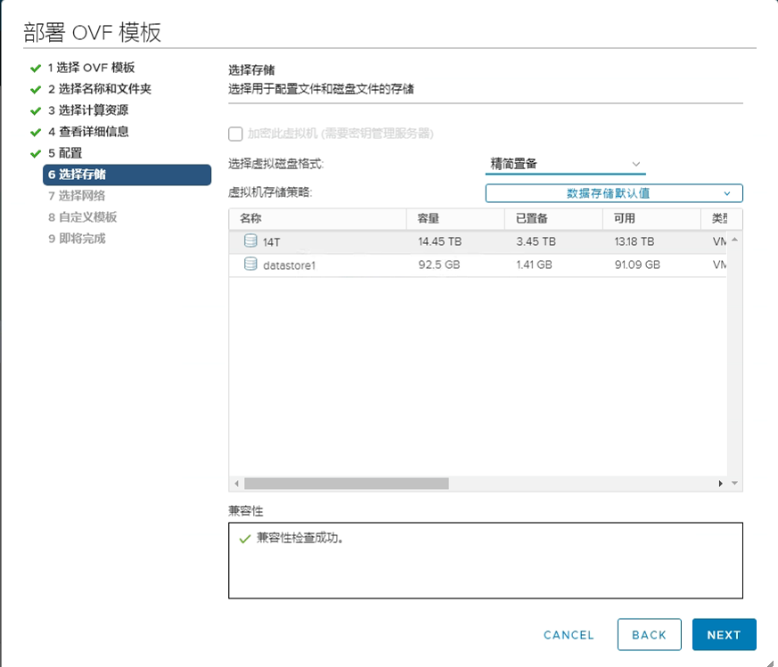5、磁盘置备模式,根据实际情况选择,我这里选择精简;