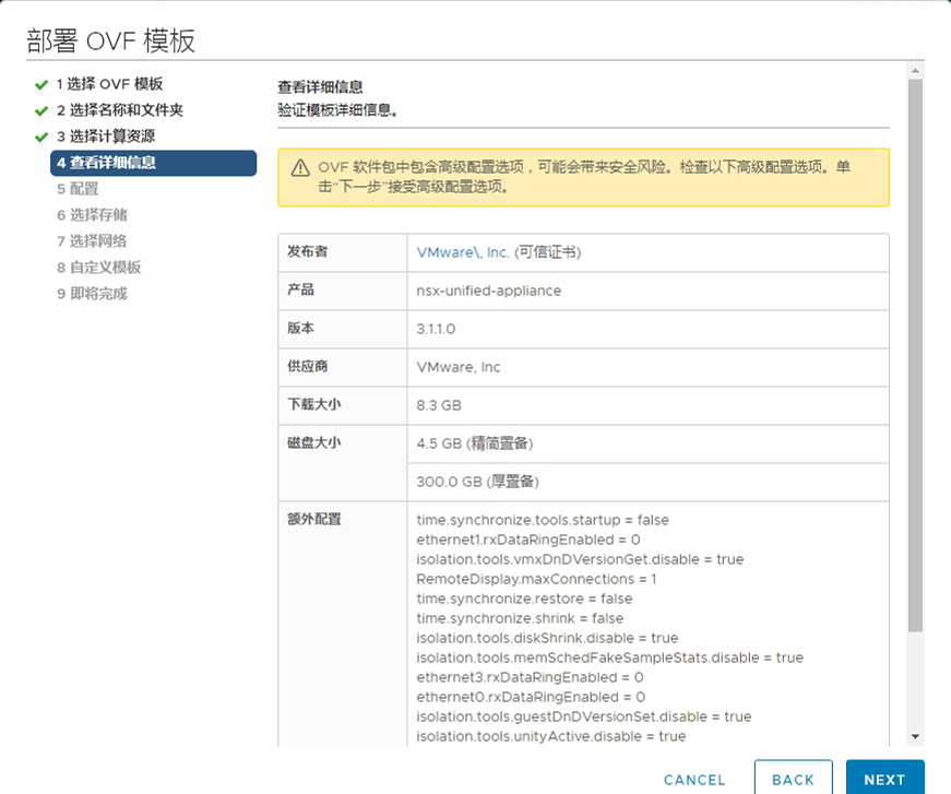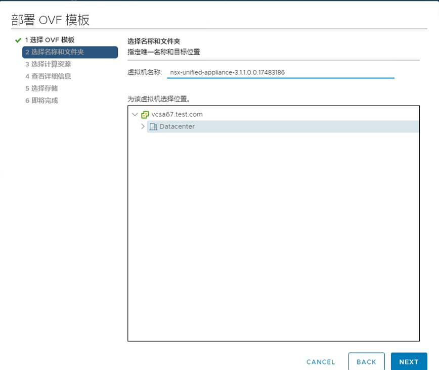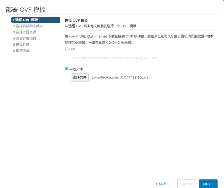 1、部署OVF模板,选择本地ova格式的安装包。以3.1.1.0为例;