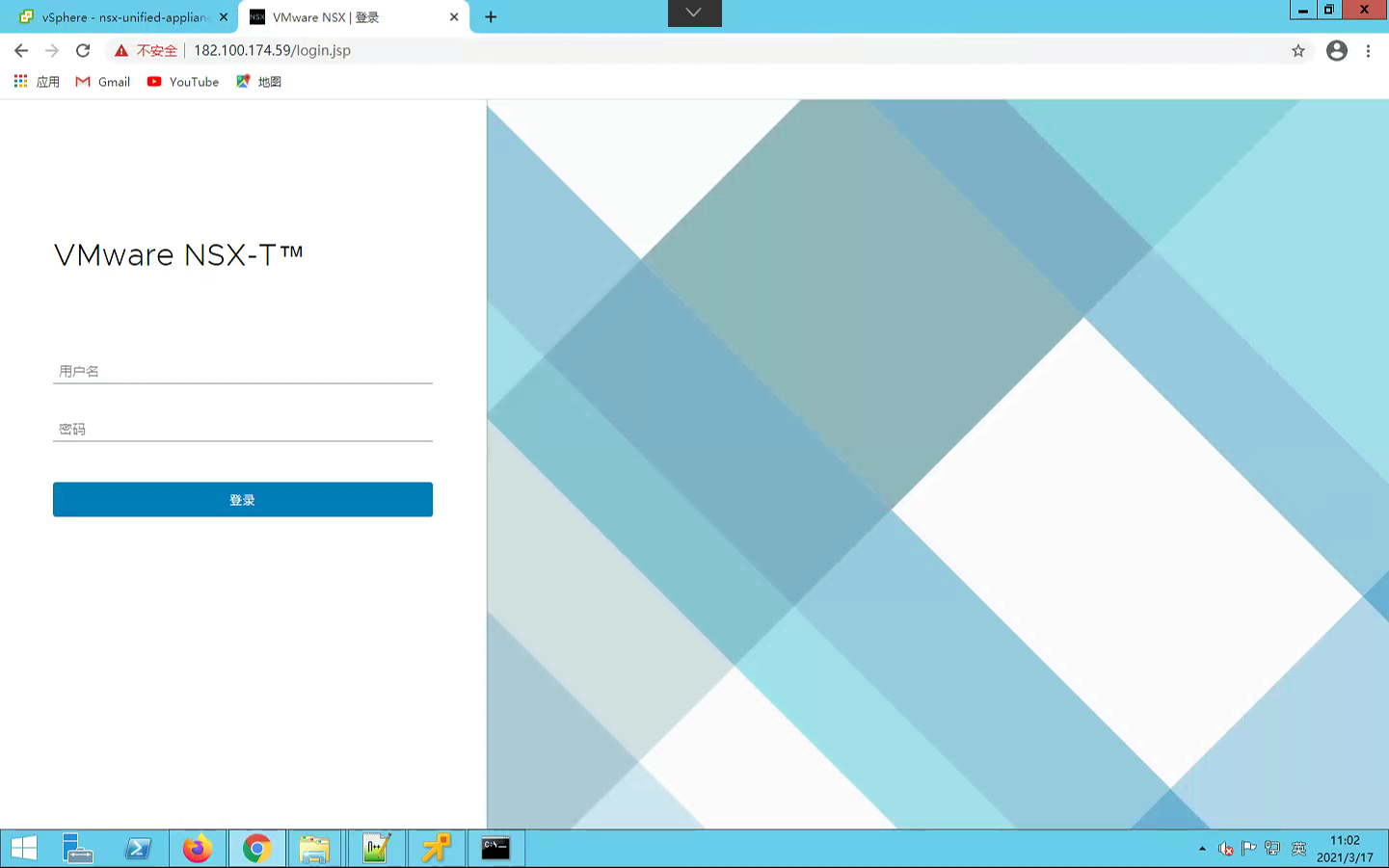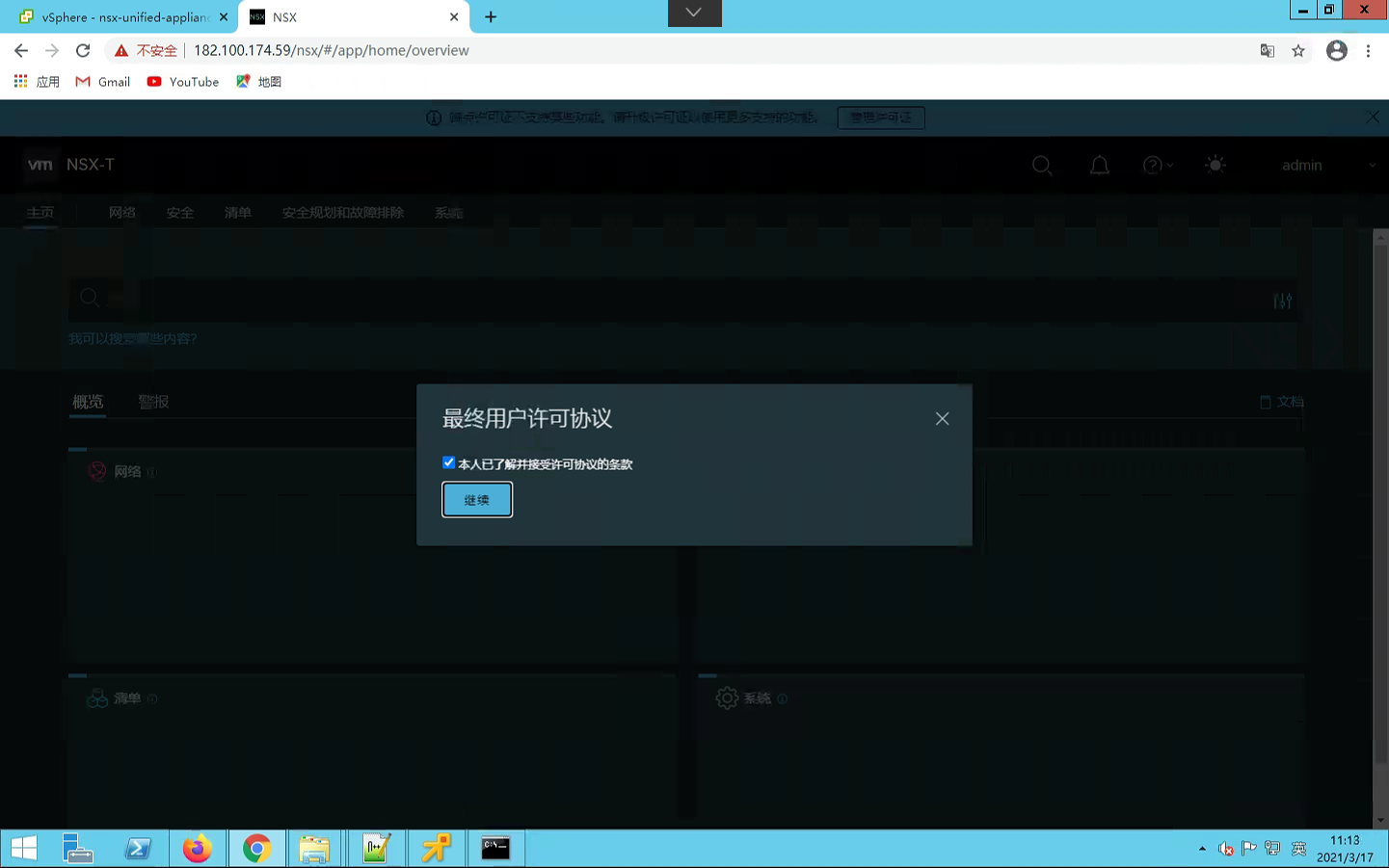 7、等待导入成功,开启虚拟机,等待服务启动成功,登录https://nsx-ip,进入NSX-T配置界面;