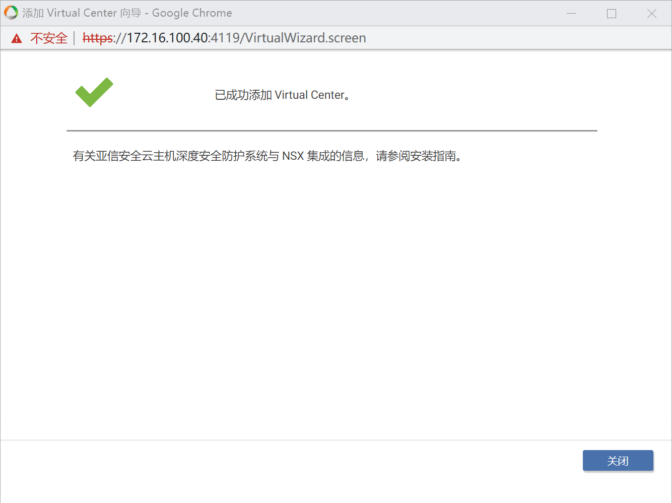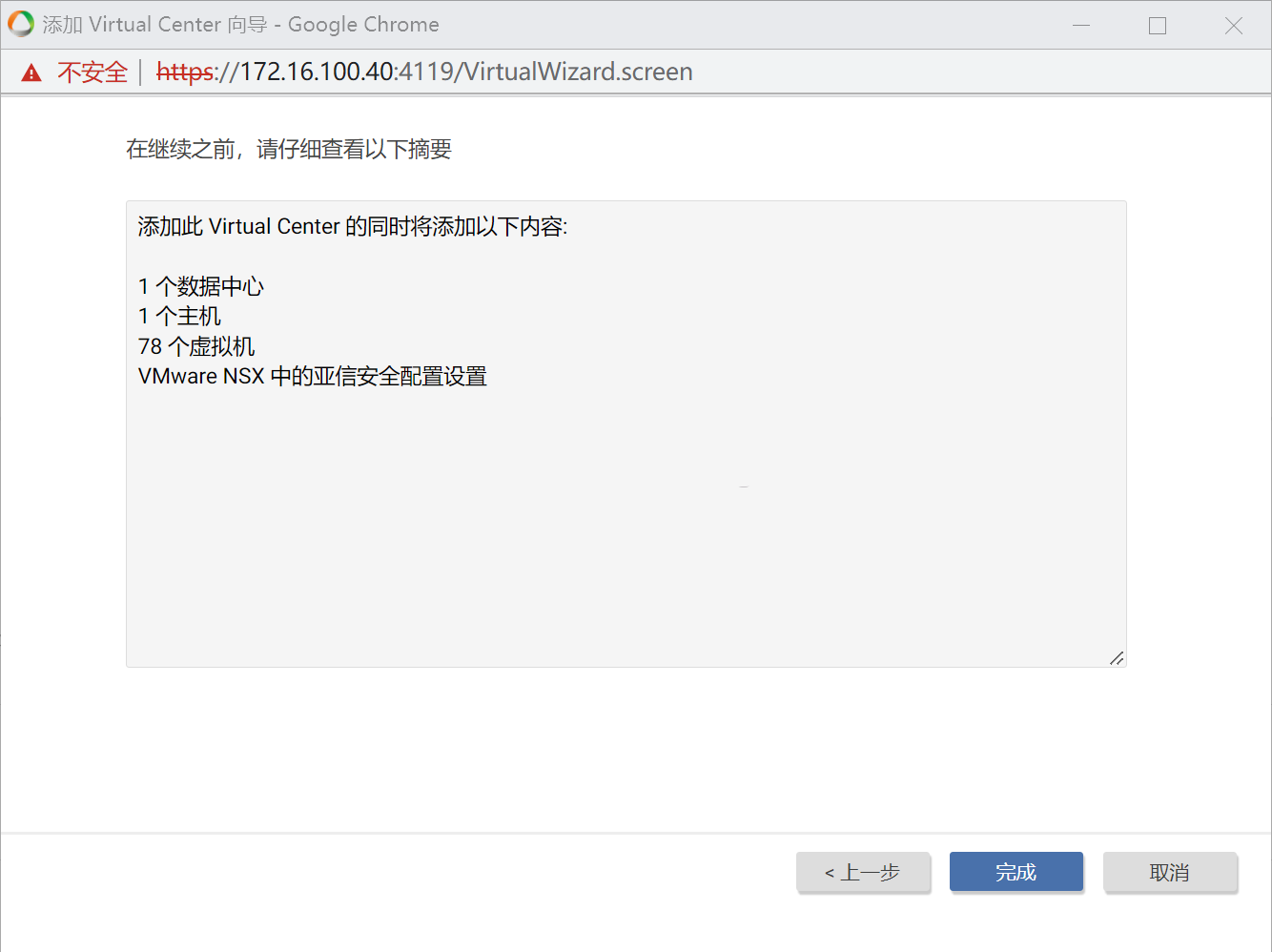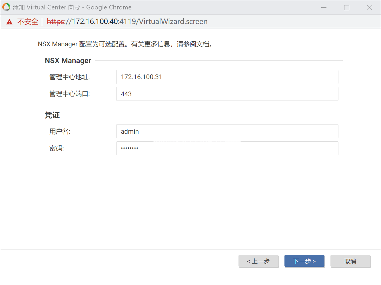 填写vCenter和NSX的对应信息。弹出证书时候点击确定。