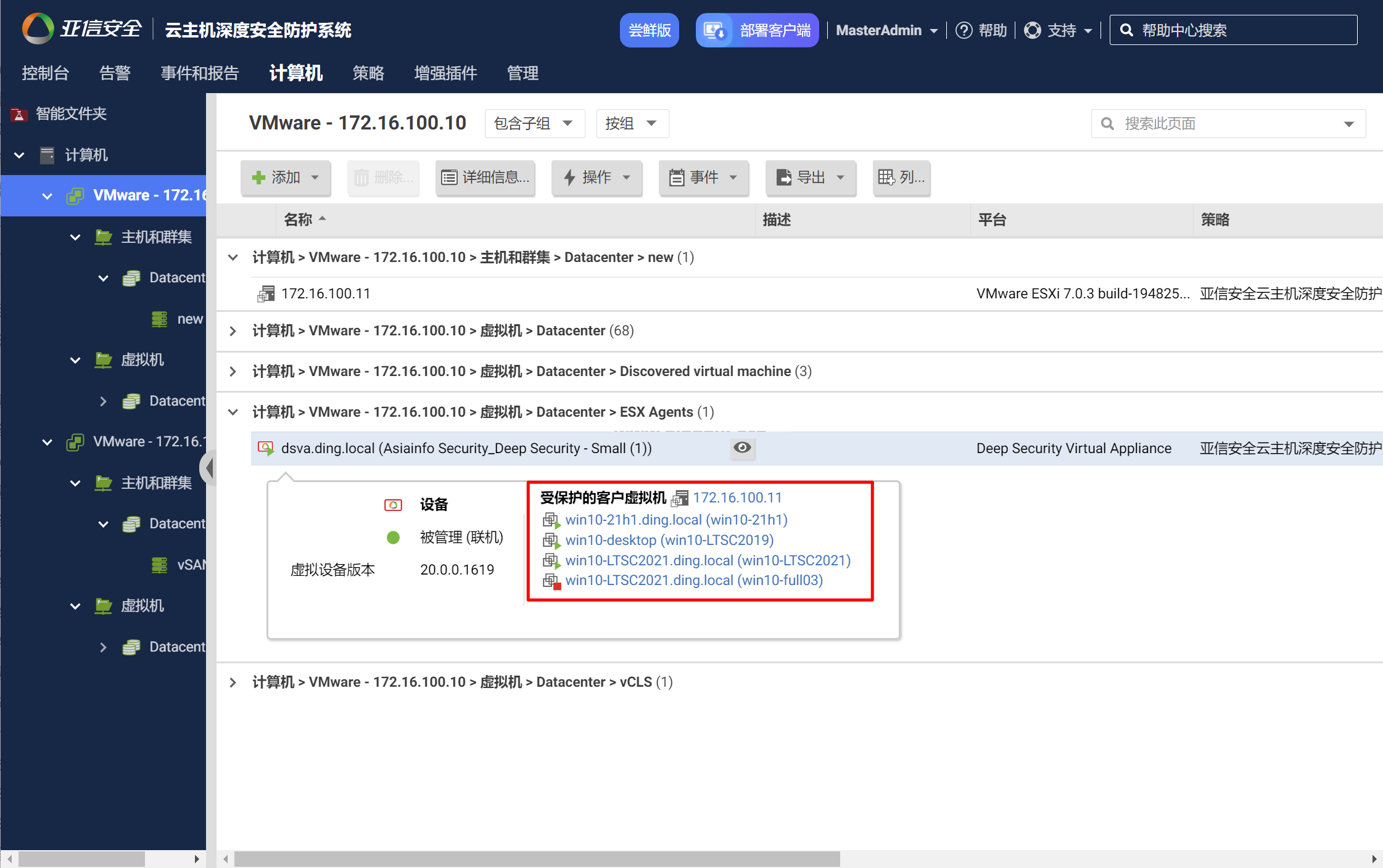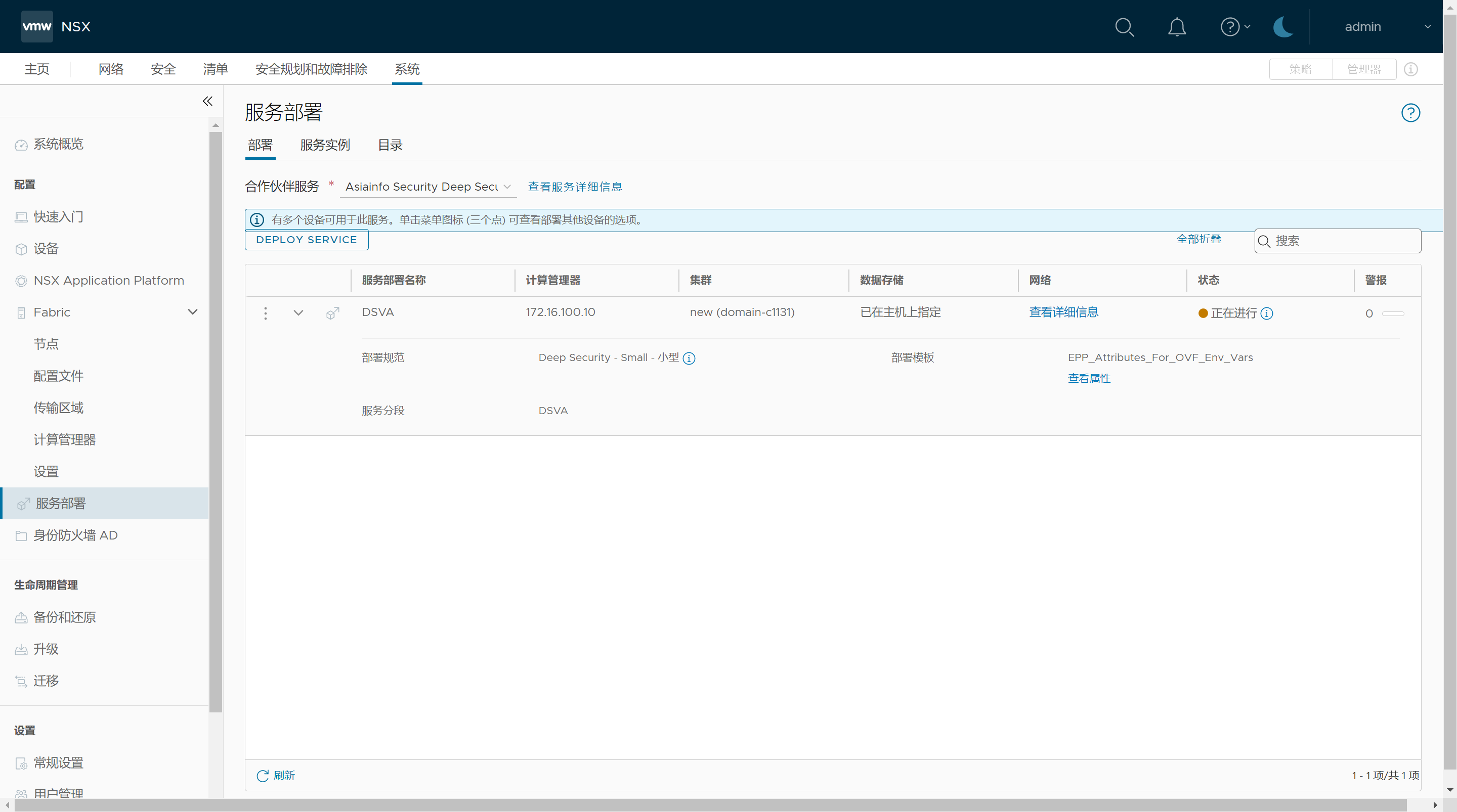 下面就以亚信安全信舱云主机安全(DS)部署为例,同步体验NSX和DS集成与配置。和亚信DS的对接不管是NSX-V还是NSX-T都可以支持,NSX-V基于Guest Introspection与第三方防病毒软件实现,因为NSX-V已经逐渐被NSX-T取代(4.0版本后改名NSX),本章节主要以NSX 4.0版本开展部署。