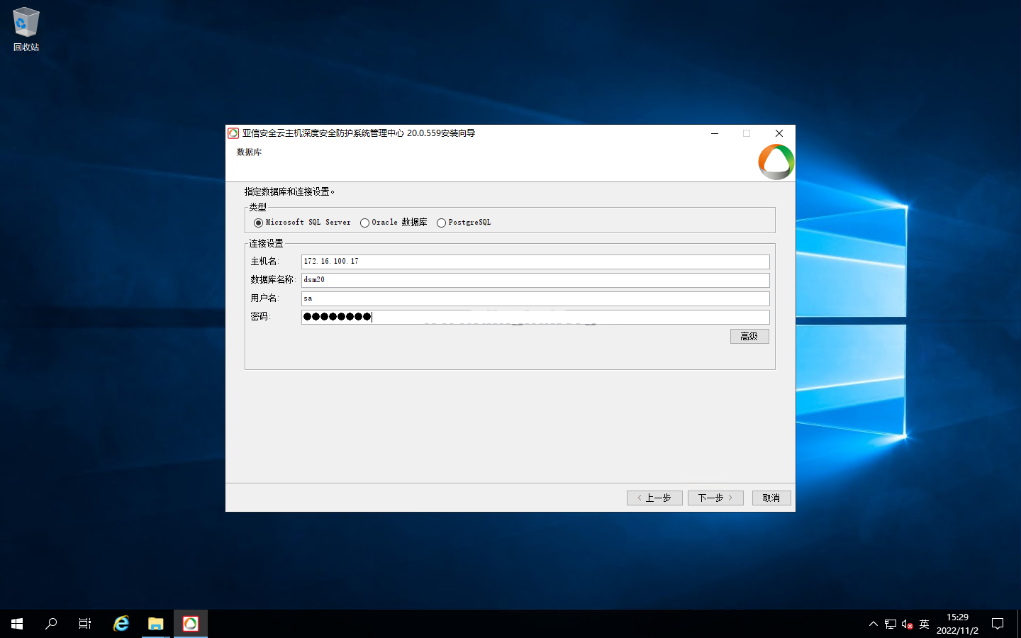 输入已经提前开设好的对应SQL数据库信息;