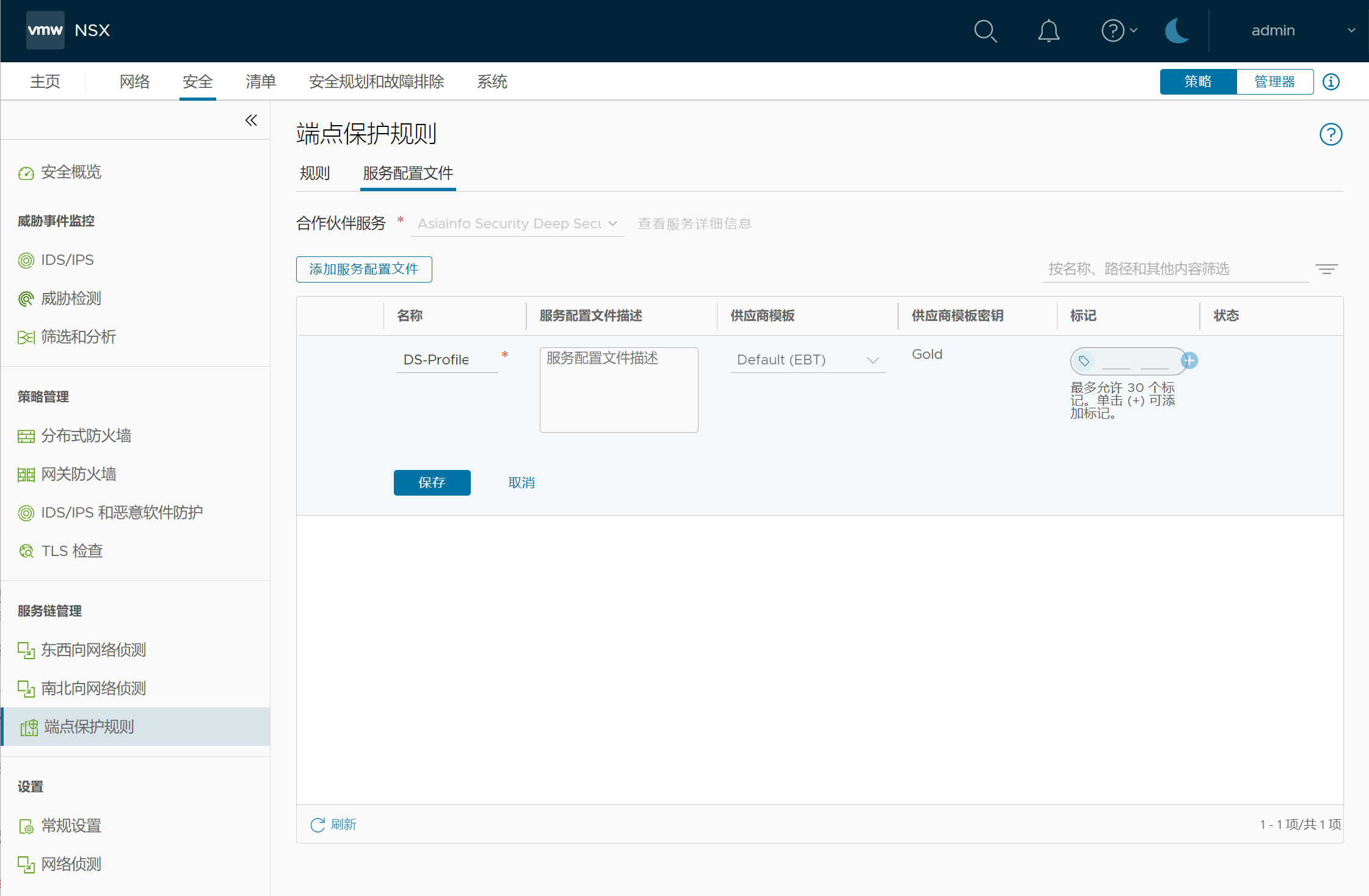安全-服务链管理-端点保护规则-服务配置文件