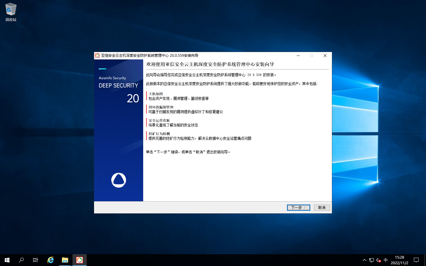 创建一台Windows Server 2019虚拟机,并准备好SQL数据库,DS 20.0.3相关安装包(本例为Manager-Windows-20.0.559.x64.exe),将所有安装包放置于同一目录下。开始安装。