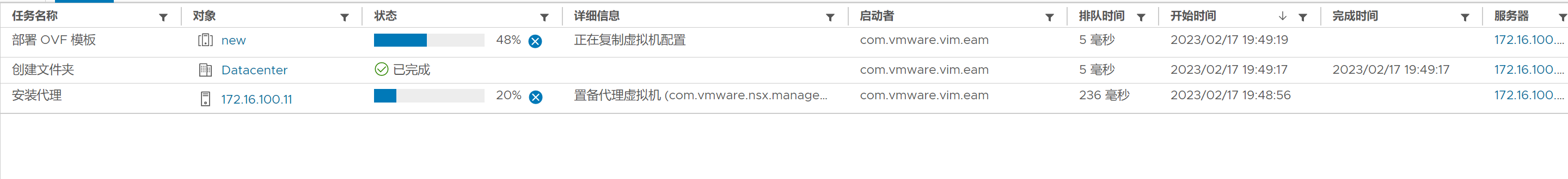 返回到vCenter,可以看到已经在开始部署代理虚拟机了。