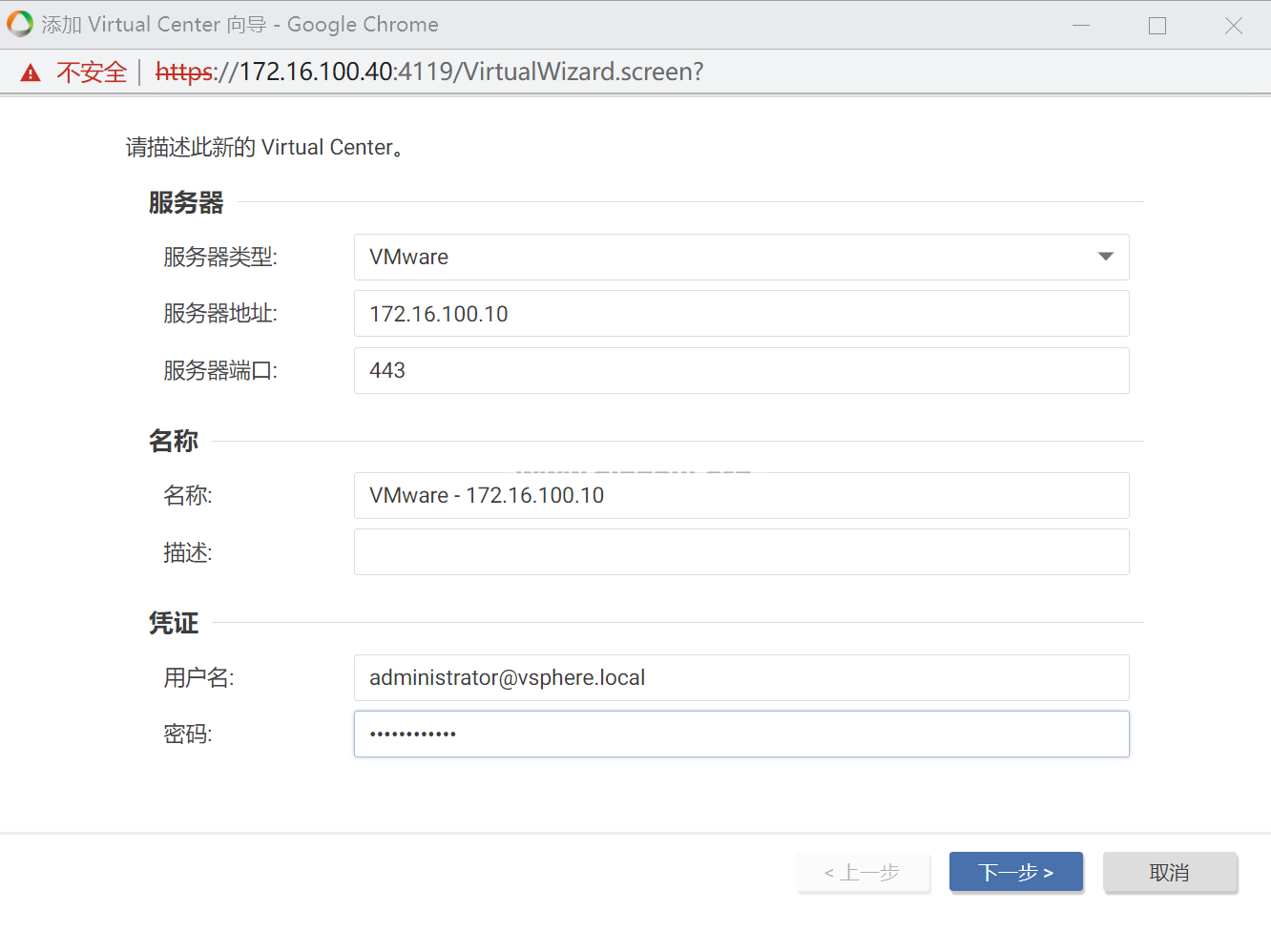 添加vCenter信息;