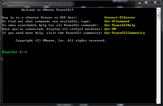 然后重新启动VMware PowerCLI会有个默认的设置,直接回车即可,第二次启动后可以看到如下画面,此时VMware PowerCLI安装完成