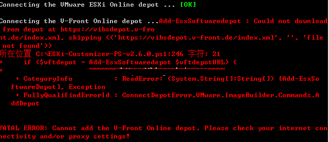 FATAL ERROR: Canot add the V-Front Online depot. Please check your internet connectivity and/or proxy settings!