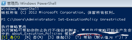 解决办法:开始-所有程序-附件-Windows PowerShell(管理员身份运行),输入