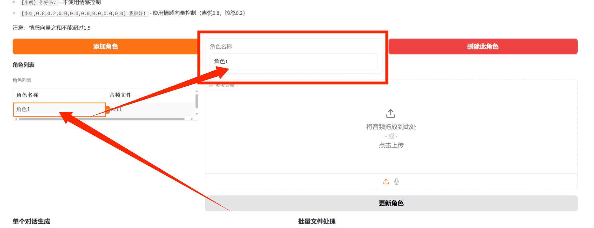 - 你会看到左侧 “角色列表” 中的角色信息已成功更新,显示了新的角色名和音频文件路径。