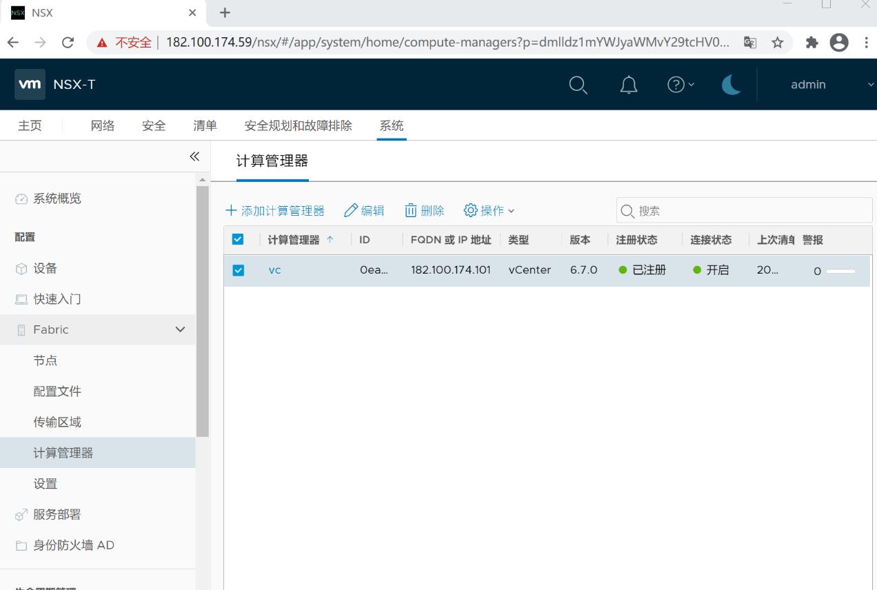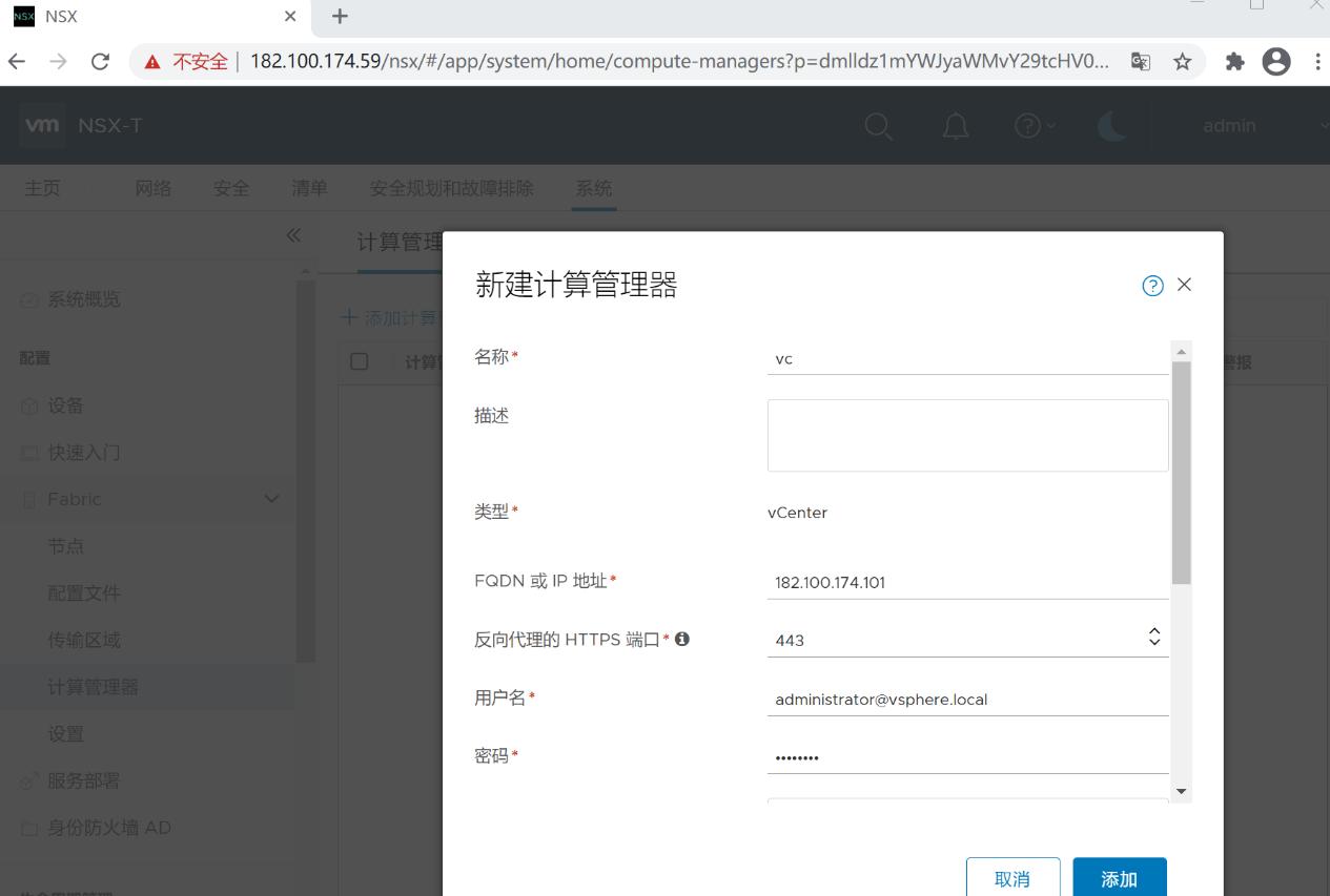 8、注册vCenter,选择系统-配置-Fabric-计算管理器,添加