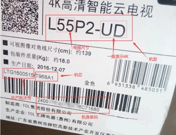 每个电视都有一个电视型号如L43E6800 L代表是LCD LED电视,43代表液晶显示屏是43英寸,有的电视带有UD